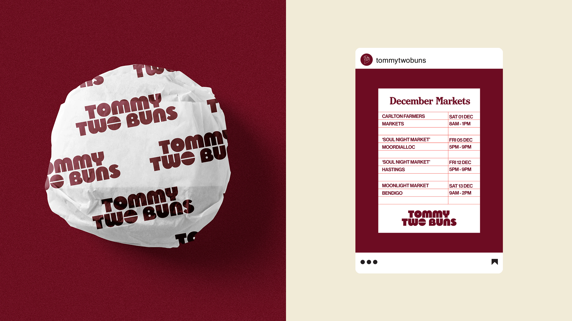 Tommy Two Buns is a new pop-up burger brand based in Melbourne cooking up a storm. Selling out their first market and popping up at multiple markets a month, the momentum they are creating has been really exciting to be a part of.